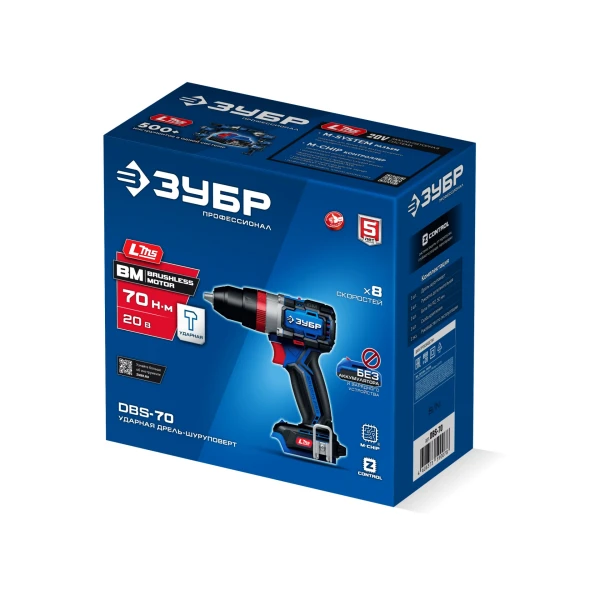 ЗУБР 20 В, 70 Н·м, без АКБ (LMS), бесщеточная ударная дрель-шуруповерт, ПРОФЕССИОНАЛ (DBS-70)