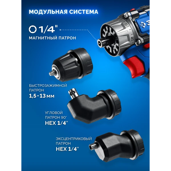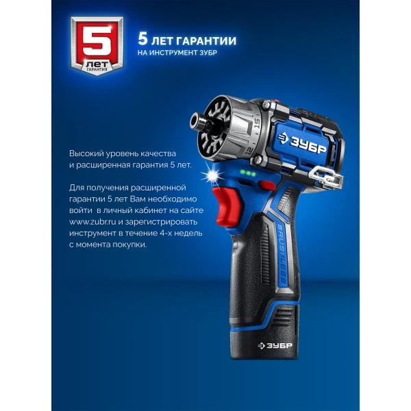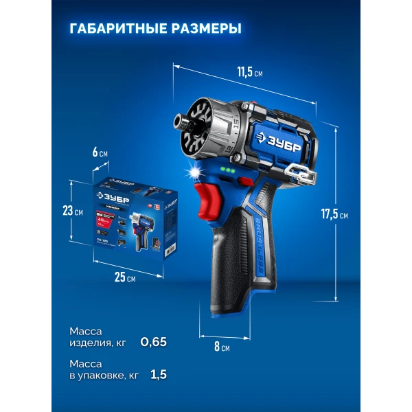 ЗУБР КОМБИ #1, 12 В, 45 Н·м, без АКБ (тип Т7), модульная дрель-шуруповерт, BRUSHLESS, Профессионал (DB-125)