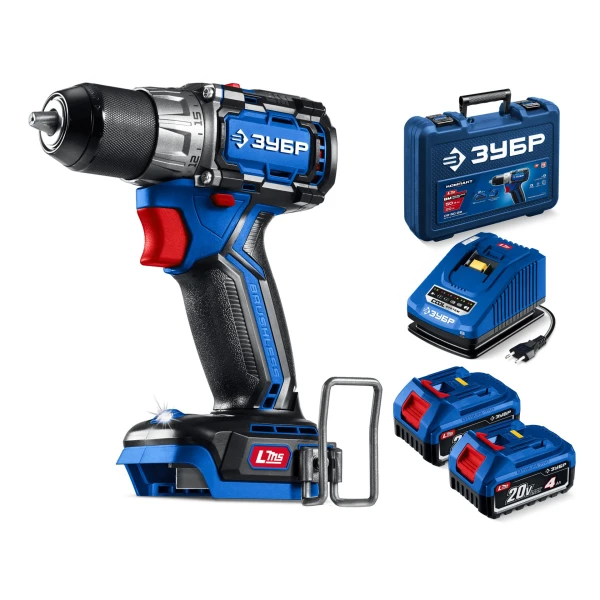 ЗУБР КОМПАКТ #3 20 В, 50 Н·м, 2 АКБ LMS (4 А·ч), бесщеточная дрель-шуруповерт, кейс, ПРОФЕССИОНАЛ (DB-50-42)