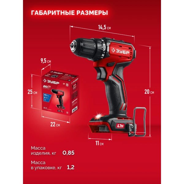 ЗУБР 20 В, 45 Н·м, без АКБ (LMS), бесщеточная дрель-шуруповерт (ДБ-45)