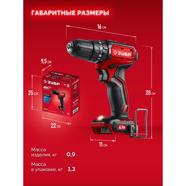 ЗУБР 20 В, 45 Н·м, без АКБ (LMS), бесщеточная ударная дрель-шуруповерт (ДБУ-45)
