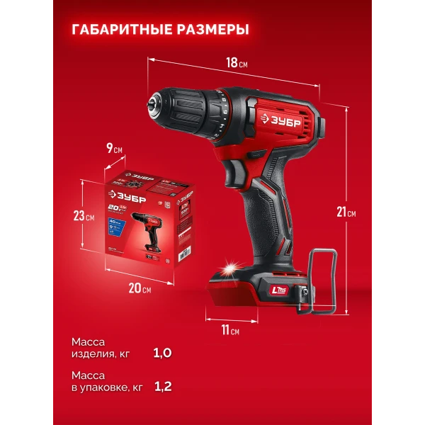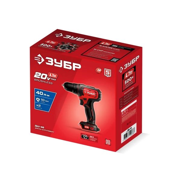 ЗУБР 20 В, 40 Н·м, без АКБ (LMS), дрель-шуруповерт (ДШ-40)