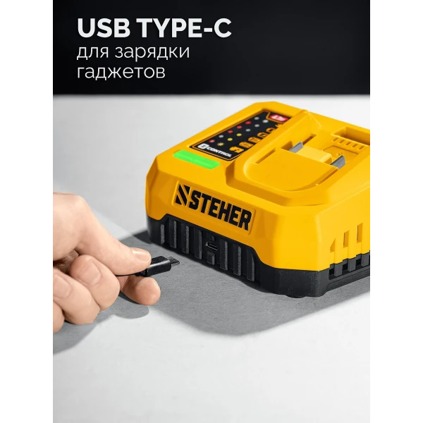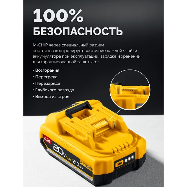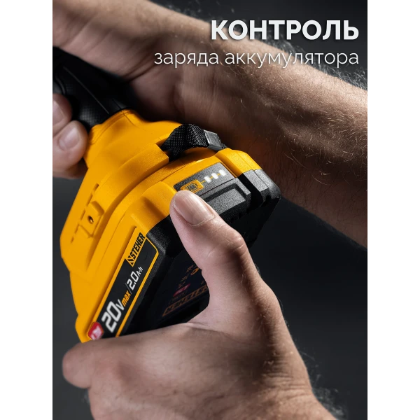 STEHER 20 В, 65 Н·м, 2 АКБ LMS (2 А·ч), бесщеточная дрель-шуруповерт, сумка (CB-65-22)