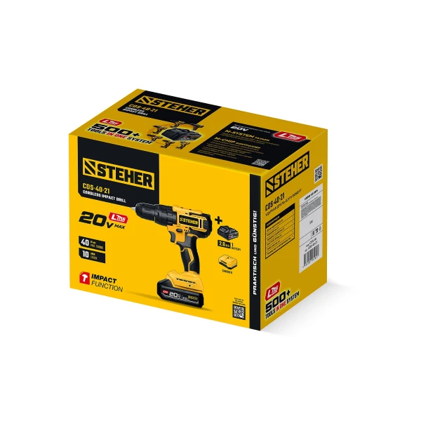 STEHER 20 В, 40 Н·м, 1 АКБ LMS (2 А·ч), ударная дрель-шуруповерт (CDS-40-21)