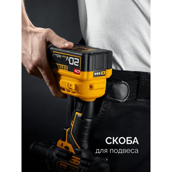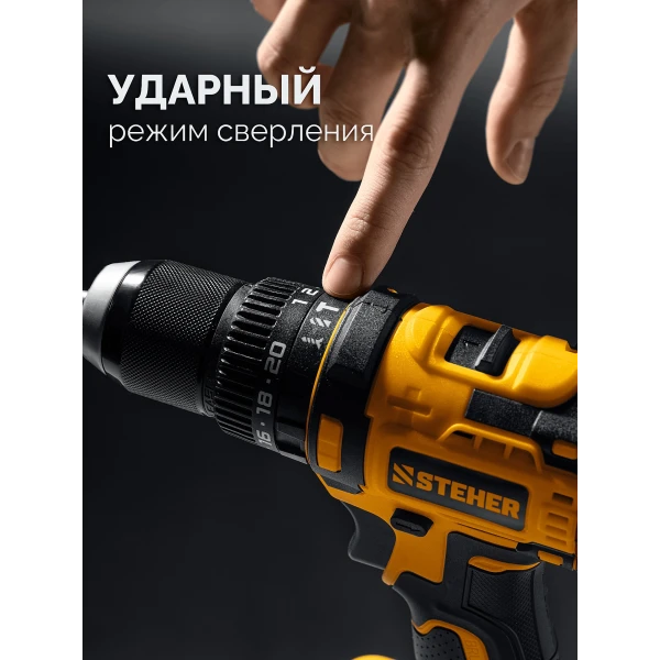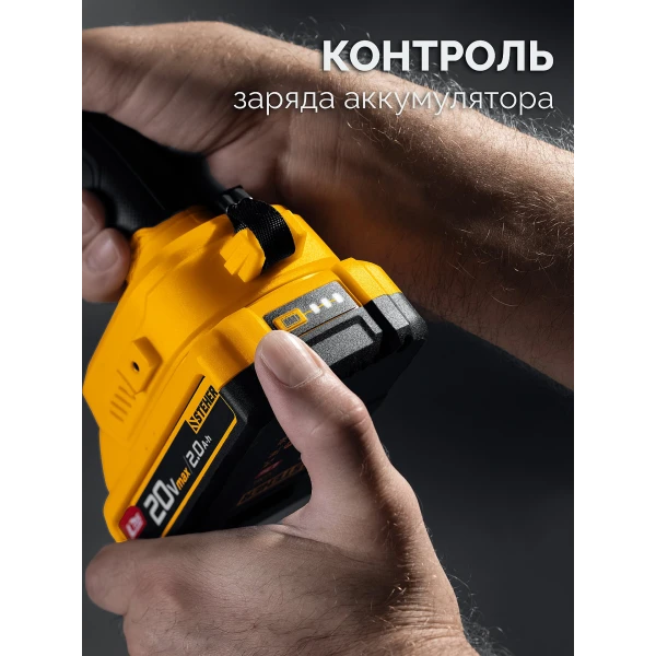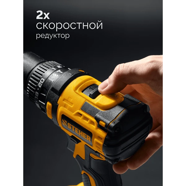 STEHER 20 В, 65 Н·м, 2 АКБ LMS (2 А·ч), бесщеточная ударная дрель-шуруповерт, сумка (CBS-65-22)