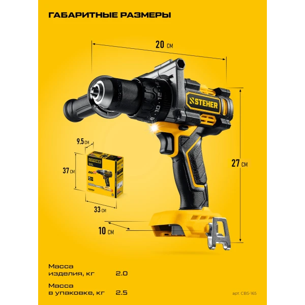 STEHER 20 В, 165 Н·м, без АКБ (LMS), бесщеточная ударная дрель-шуруповерт (CBS-165)
