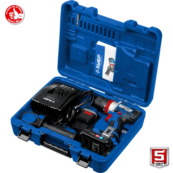 ЗУБР Т7, 20 В, 70 Н·м, 2 АКБ (2 А·ч), бесщеточная ударная дрель-шуруповерт, кейс, Профессионал (DBS-201-22)