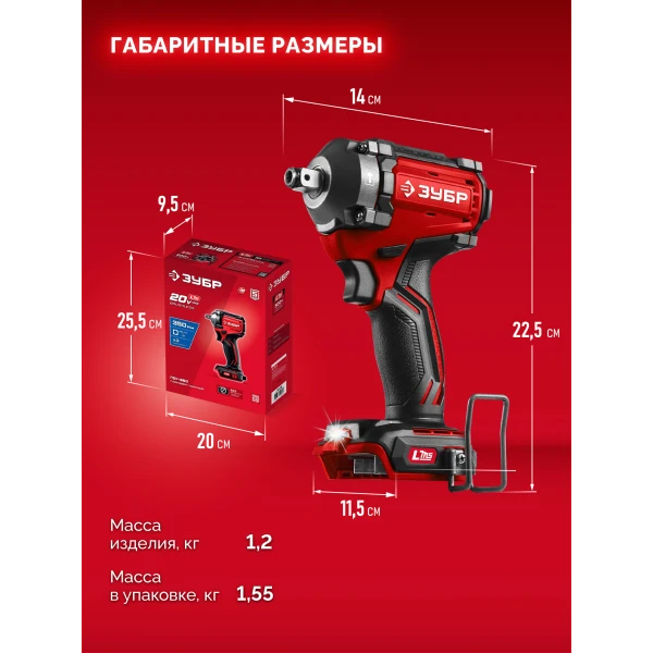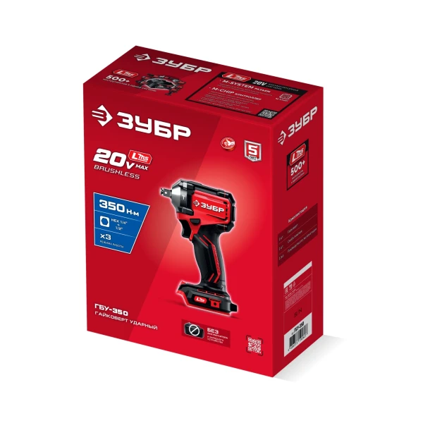 ЗУБР 20 В, 350 Н·м, без АКБ (LMS), бесщеточный ударный гайковерт (ГБУ-350)