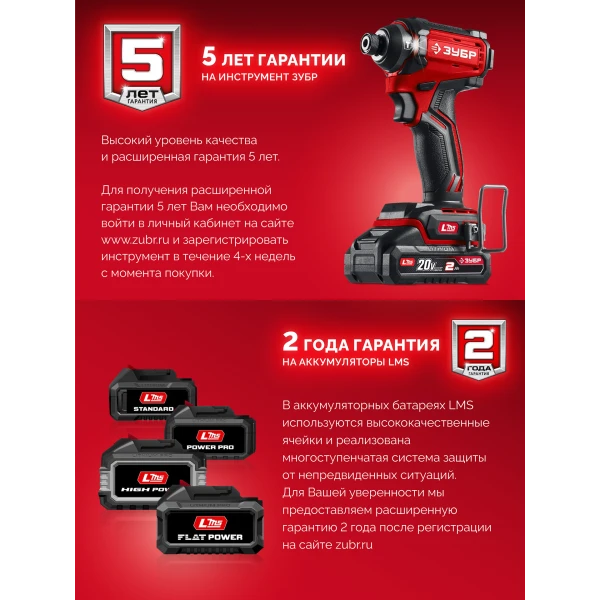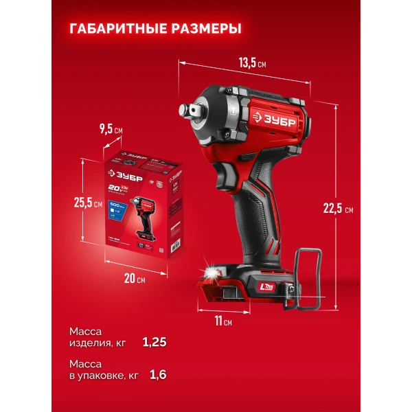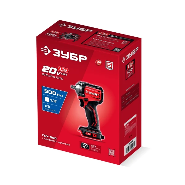 ЗУБР 20 В, 500 Н·м, без АКБ (LMS), бесщеточный ударный гайковерт (ГБУ-500)