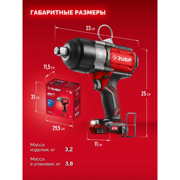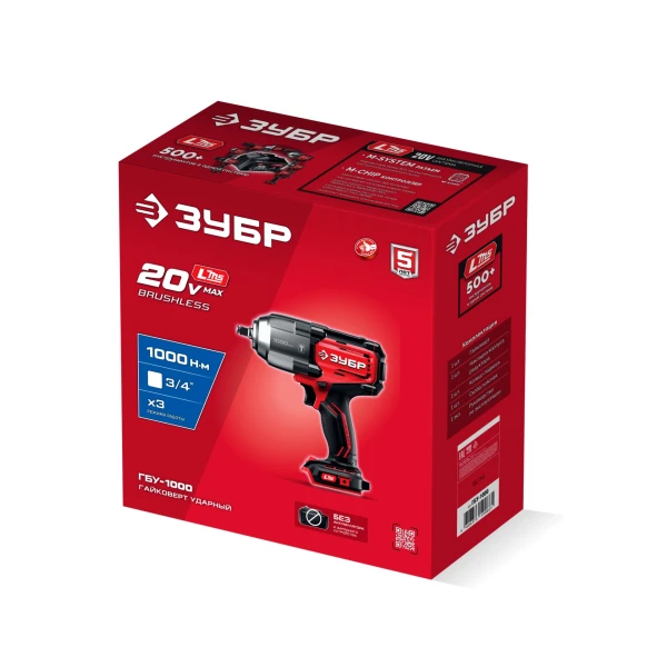 ЗУБР 20 В, 1000 Н·м, без АКБ (LMS), бесщеточный ударный гайковерт (ГБУ-1000)