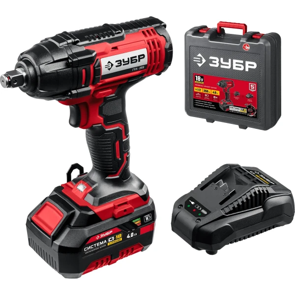ЗУБР С1-18, 18 В, 250 Н·м, 1 АКБ (4 А·ч), гайковерт ударный, кейс (ГУЛ-255-41)