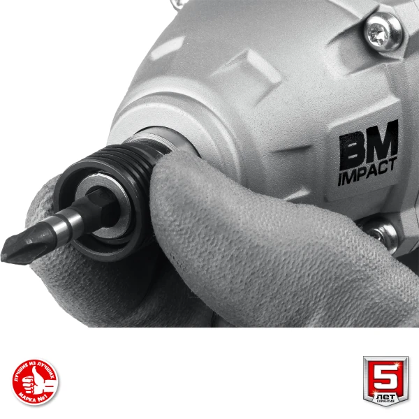 - Быстрозажимной патрон HEX 1/4'' с фиксатором позволяет устанавливать стандартные биты