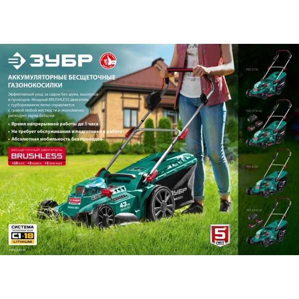 ЗУБР С1-18, 36 В, 43 см, без АКБ, бесщеточная газонокосилка (ГКЛ-4336)