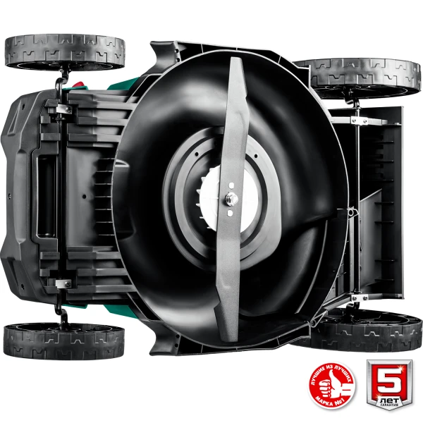 - Облегченные колеса и эргономичная рукоятка облегчают перемещение косилки по газону