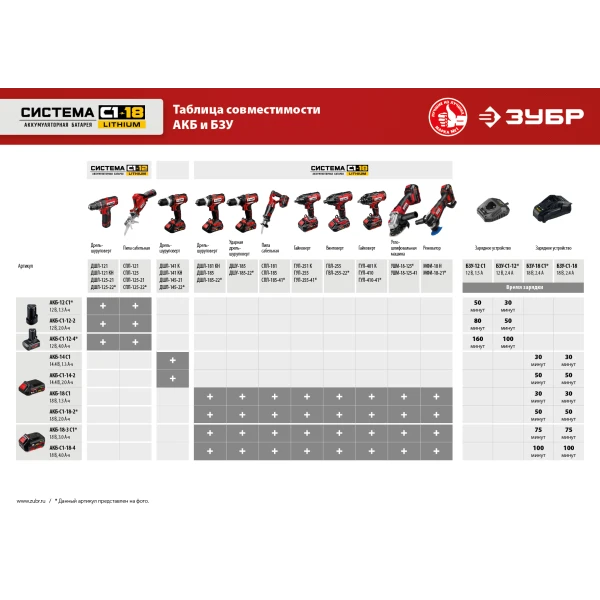 | Напряжение питания зарядного устройства, В/Гц | 230/50 |