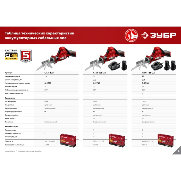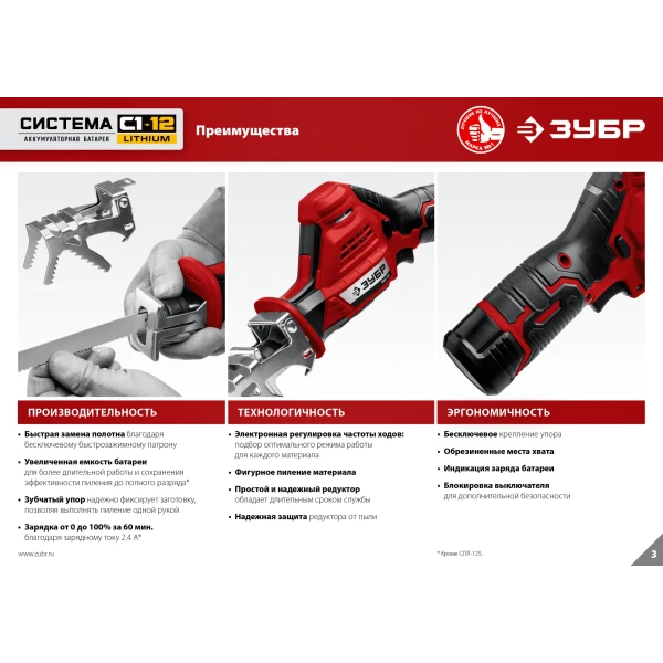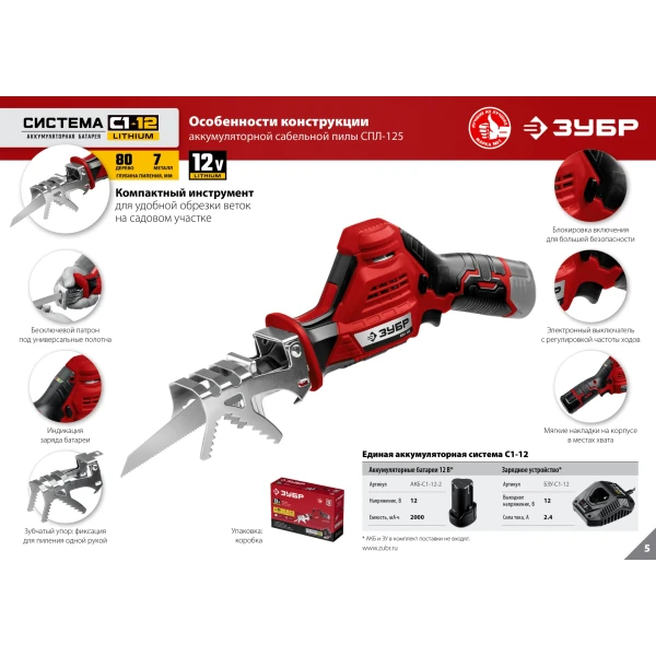 ЗУБР С1-12, 12 В, 80 мм, без АКБ, сабельная пила (СПЛ-125)