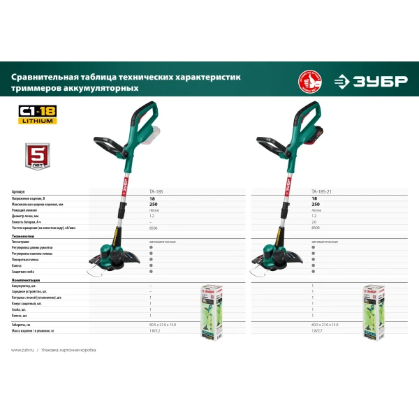 ЗУБР С1-18, 18 В, 25 см, без АКБ, аккумуляторный триммер (ТА-185)
