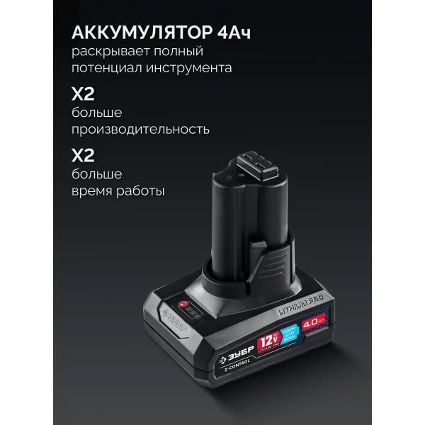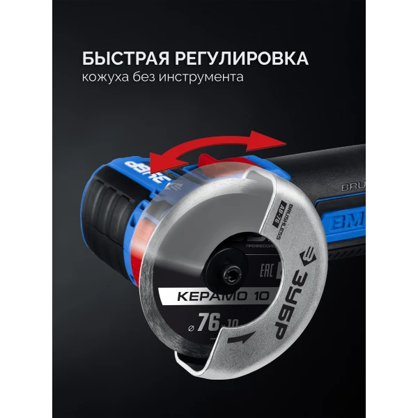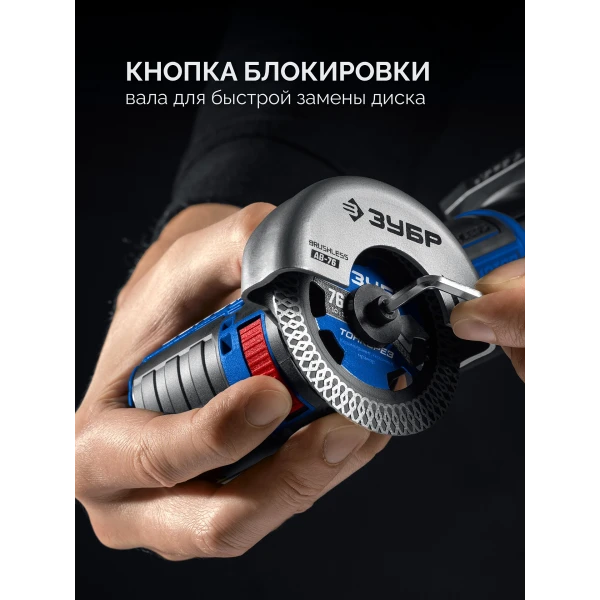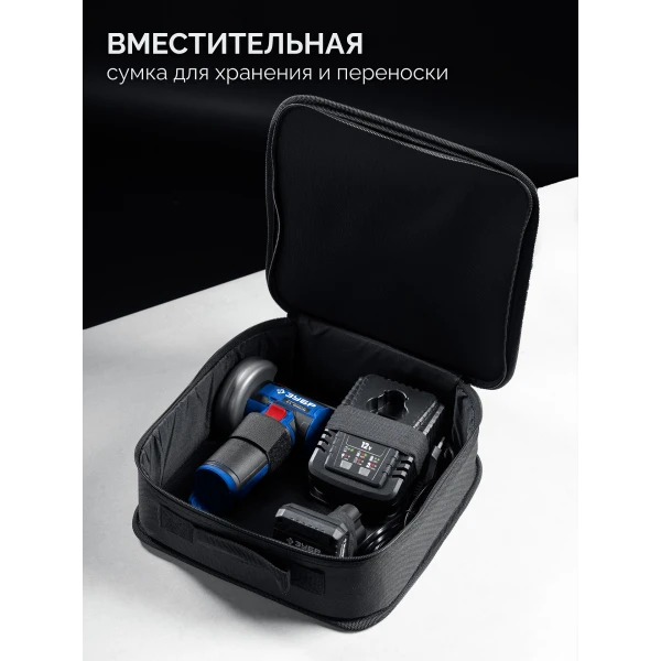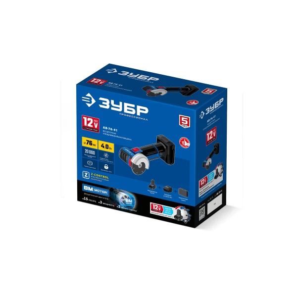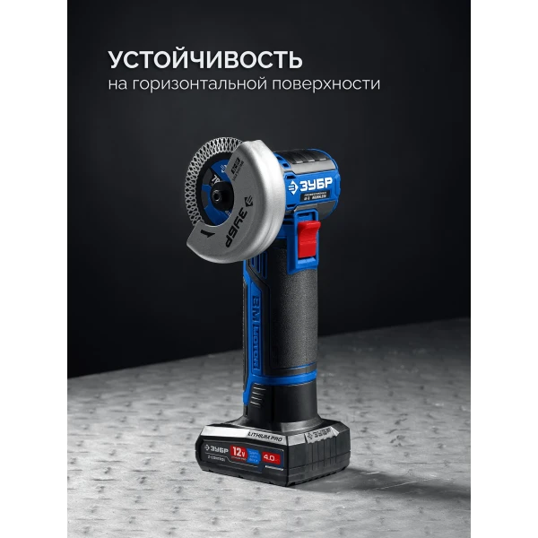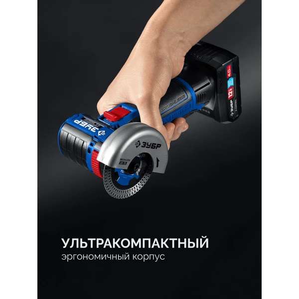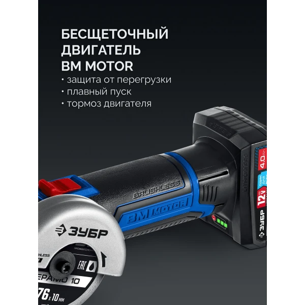 ЗУБР 12 В, D76 мм, 1 АКБ тип Т7 (4 А·ч), бесщеточная УШМ, сумка, Профессионал (AB-76-41)