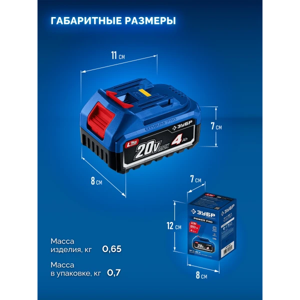 ЗУБР Power PRO, 20 В, 4.0 А·ч, аккумулятор LMS, ПРОФЕССИОНАЛ (BP-P-20-4)