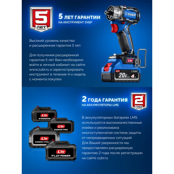 Источник питания для инструмента ЗУБР Професссионал системы LMS позволит Вам работать дольше и производительнее. Качественные элементы INR-18650 с усовершенствованной технологией обеспечивают повышенные удельные характеристики и длительный срок службы