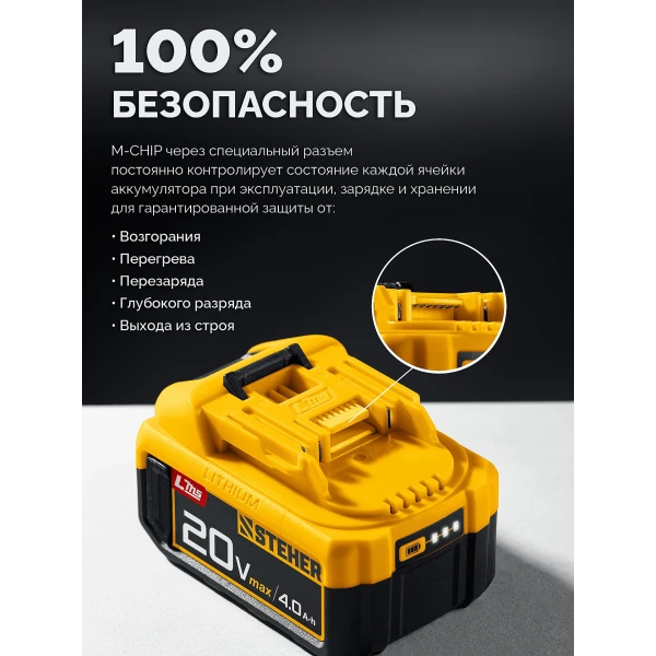 STEHER 20 В, 4.0 А·ч, аккумулятор LMS (BP-20-4)
