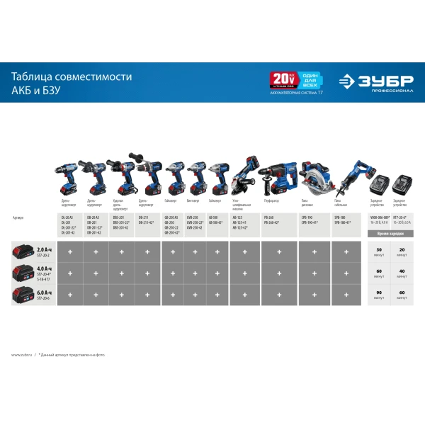 Источник питания для шуруповерта ЗУБР с увеличенной емкостью позволит Вам работать еще дольше и производительнее. Современные Li-Ion элементы профессиональной серии гарантируют превосходные технические характеристики, надежность и результат