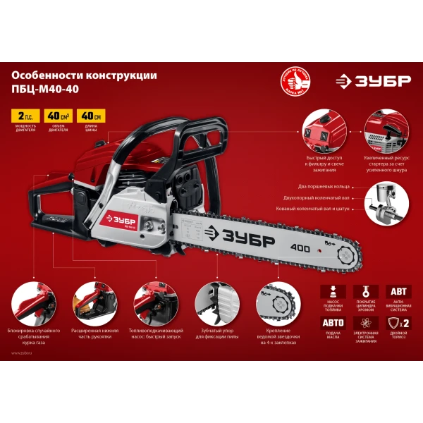 ЗУБР 40 см3, 40 см, бензопила (ПБЦ-М40-40)