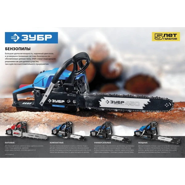ЗУБР 45 см3, 40 см, бензопила, Профессионал (ПБЦ-450 40П)