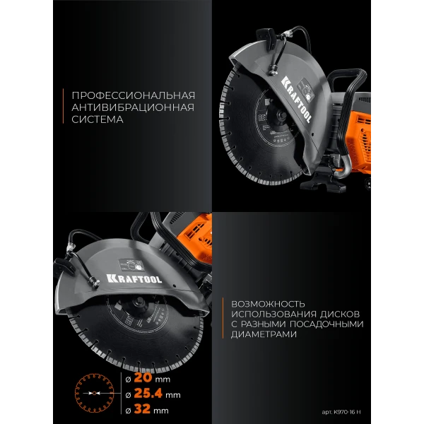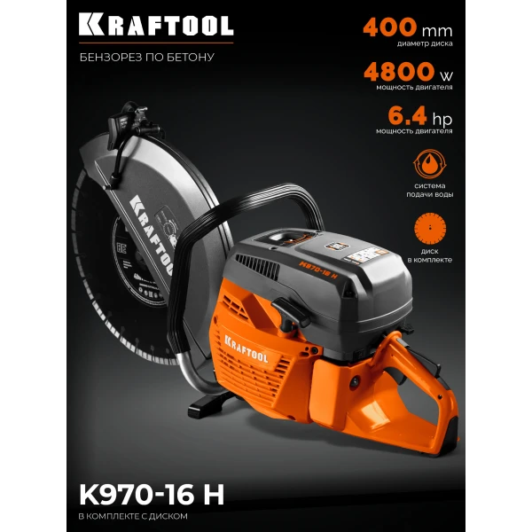 KRAFTOOL 4800 Вт, 400 мм, диск в комплекте, бензорез по бетону (бетонорез) (K970-16 H)