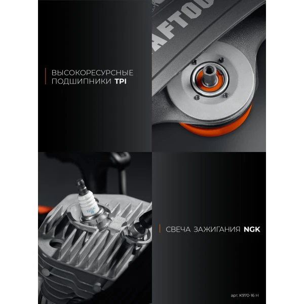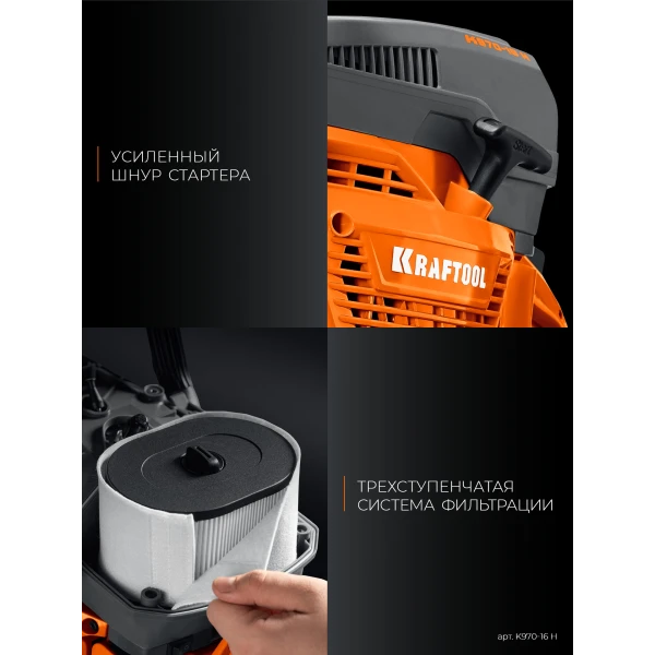 - Усиленный шнур стартера со значительно повышенной износостойкостью повышает надежность эксплуатации