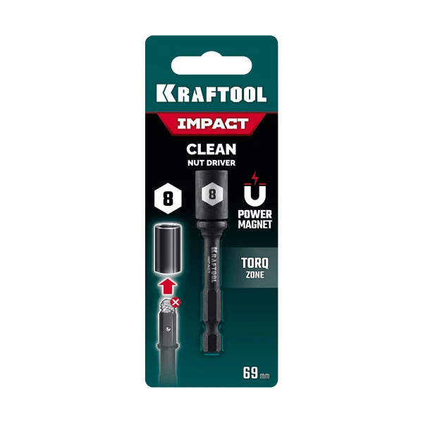 Бита KRAFTOOL Impact Pro ″Nut-driver″ с торцовой головкой, магнитная, L=69мм, хвостовик E 1/4″, 8мм, 1шт