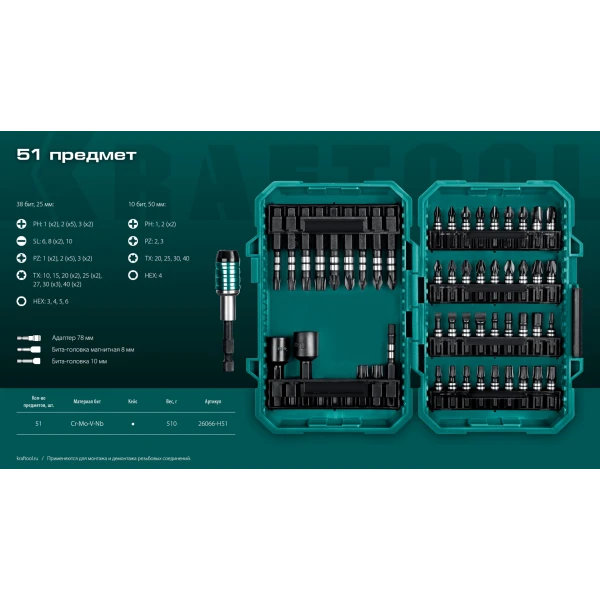 KRAFTOOL Impact-51, 51 шт, набор ударных бит (26066-H51)