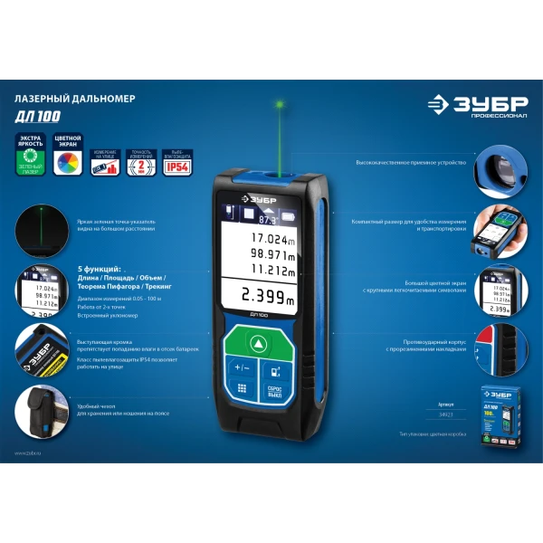 ЗУБР ДЛ-100, 100 м, лазерный дальномер, Профессионал (34923)