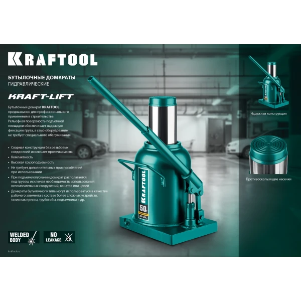 KRAFTOOL KRAFT-LIFT, 4 т, 194 - 372 мм, бутылочный гидравлический домкрат (43462-4)