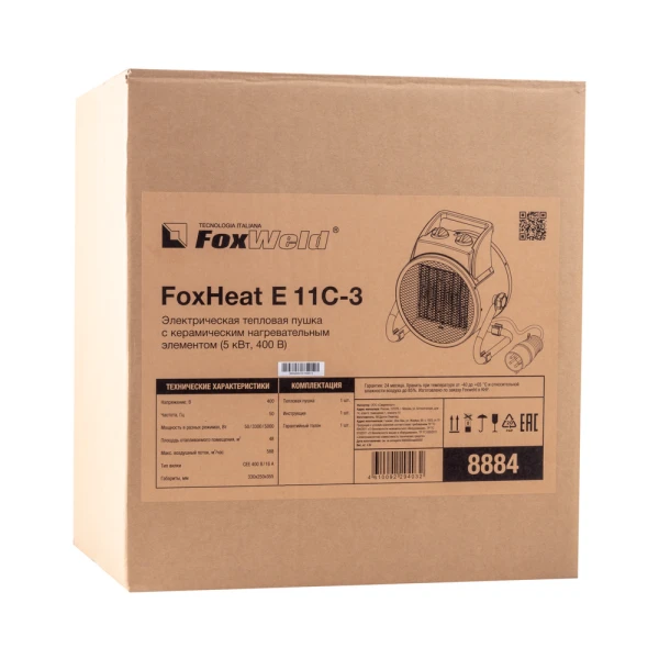 Электрическая тепловая пушка FoxHeat E 11C-3 с керамическим нагревательным элементом (5 кВт 3ф)