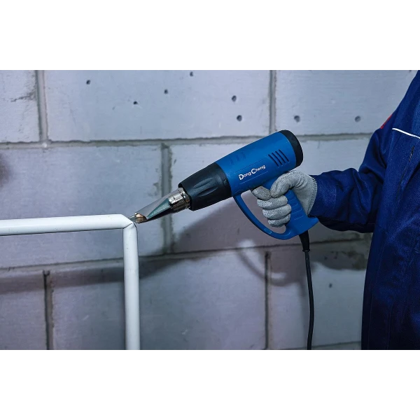 Строительный фен DQB2000 – это универсальный инструмент, незаменимый при ремонтных, строительных и монтажных работах. Благодаря мощности 2000 Вт и широкому диапазону температур (50-600°C) он справляется с самыми разными задачами, такими как размягчение клея, удаления краски, высушивания или оттаивания сантехнических элементов.