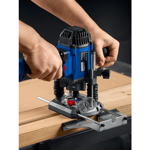 Фрезер ЗУБР серии Профессионал – многофункциональное изделие для всех видов фрезерования (продольного, фигурного, по шаблону, по радиусу) различных материалов. Мощный двигатель обеспечивает эффективную и производительную работу. Максимальная глубина погружения 80 мм позволяет выполнять пазы под замки в полотнах дверей. Удобная эргономика и бОльшая маневренность благодаря удлиненной основной рукоятке способствуют удобству при работе