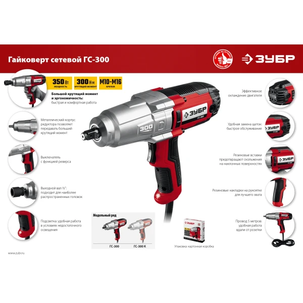 ЗУБР 300 Н·м, 350 Вт, ударный гайковерт (ГС-300)
