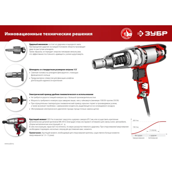 ЗУБР 300 Н·м, 350 Вт, кейс, ударный гайковерт (ГС-300 К)