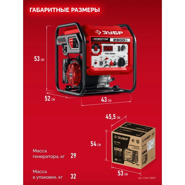 ЗУБР 2800 Вт, инверторный генератор (СБИ-2800)