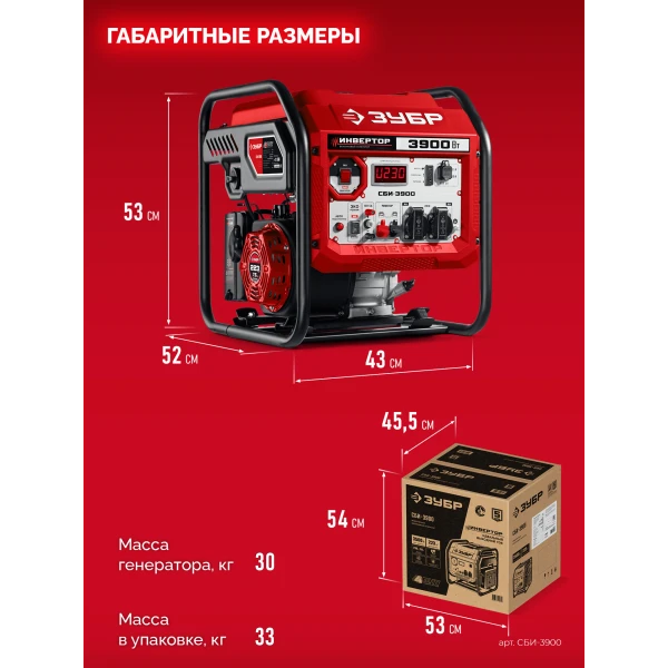 ЗУБР 3900 Вт, инверторный генератор (СБИ-3900)