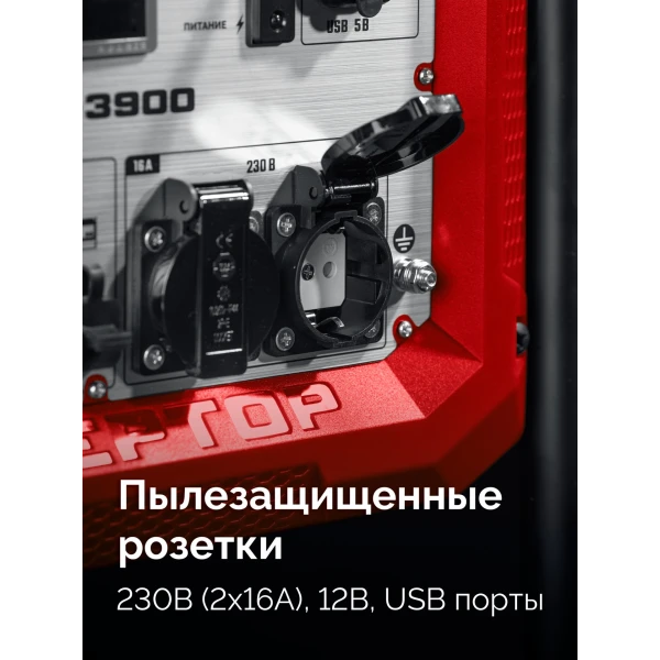 - Пылезащищенные розетки 230 В, обеспечивают улучшенную защиту для работы на улице