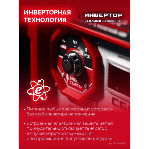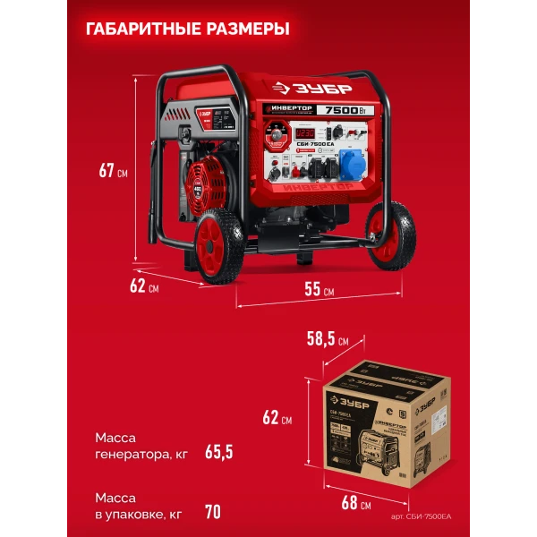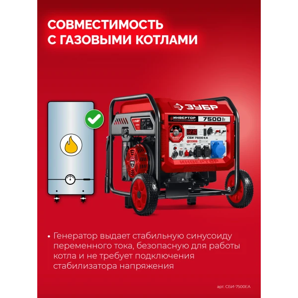 ЗУБР 7500 Вт, инверторный генератор с электростартером и розеткой АВР (СБИ-7500ЕА)