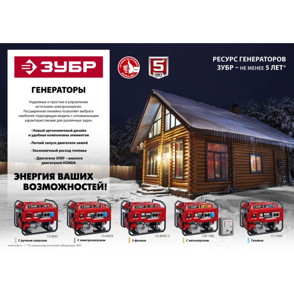 - Двигатели ЗУБР производятся по японским технологиям и аналогичны легендарным двигателям HONDA ресурс всего генератора 1500 часов