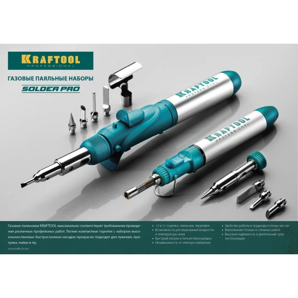 KRAFTOOL SolderGas, 70 A, 30 - 70 Вт, 1300°С, горелка, фен, набор 3 в 1, газовый паяльник (55504-H3)