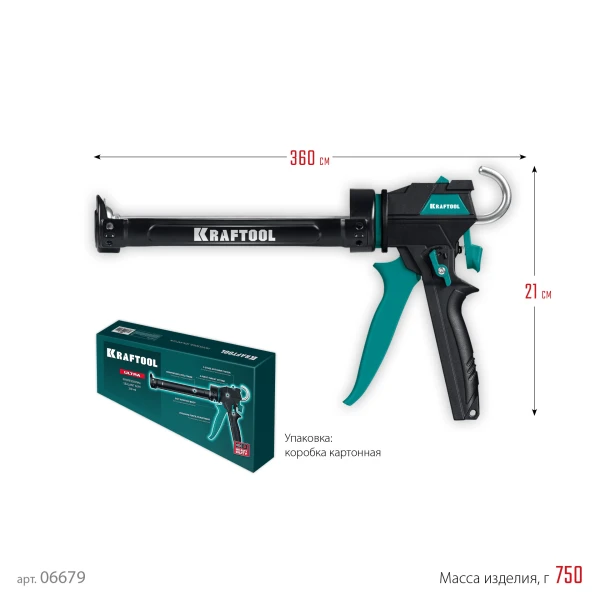 Пистолет для герметиков KRAFTOOL подходит для работы с герметиками в алюминиевой фольге и пластиковых картриджах объемом до 310 мл, эргономичная форма рукоятки создает комфортные условия работы, Изготовлен из особопрочных материалов.
