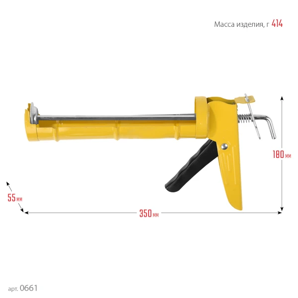 Предназначен для выдавливания и нанесения герметиков, а также клеевых составов из картриджей объемом до 310 мл.