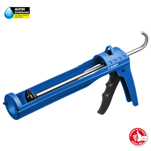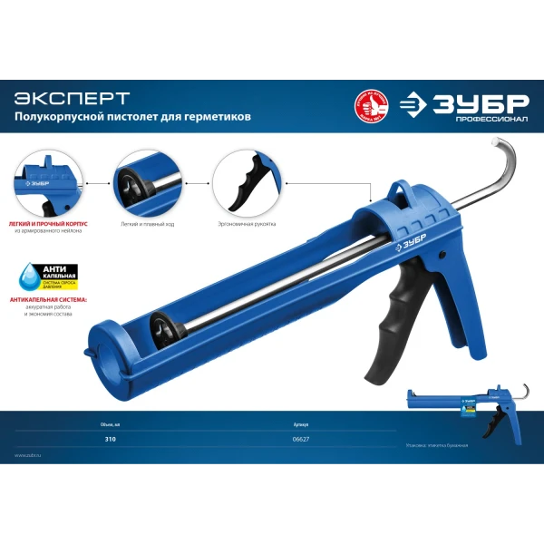 ЗУБР 310 мл, антикапельная система армированный нейлон, лёгкий полукорпусной пистолет для герметика, Профессионал (06627)