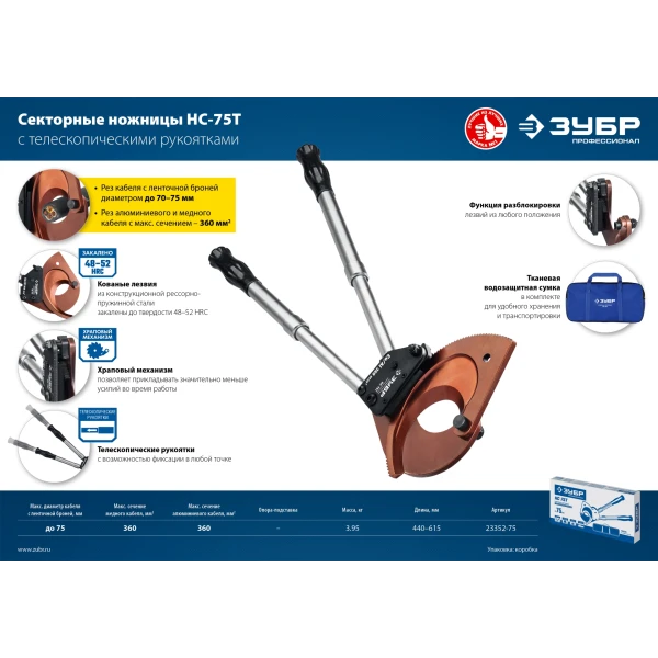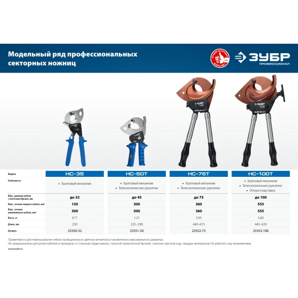 Кабелерезы ЗУБР изготовлены из высококачественной стали, предназначены для профессионального применения. Обладает повышенным ресурсом, обеспечивает высокое качество электромонтажных работ.