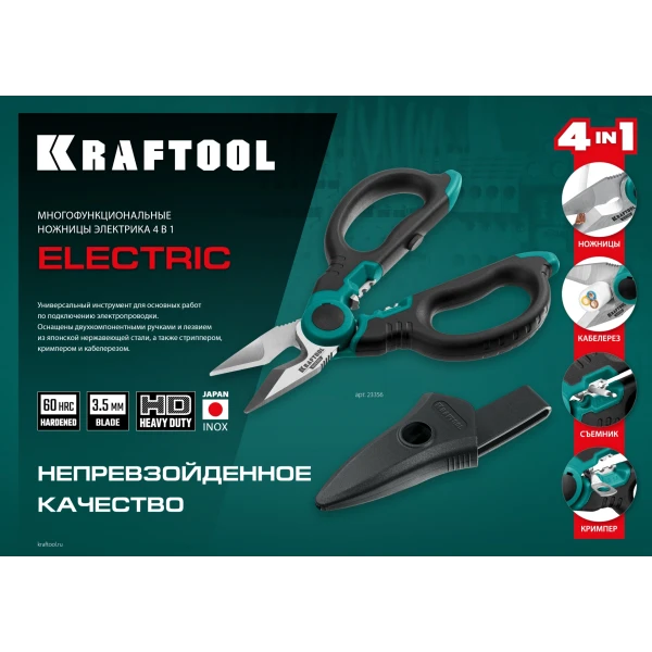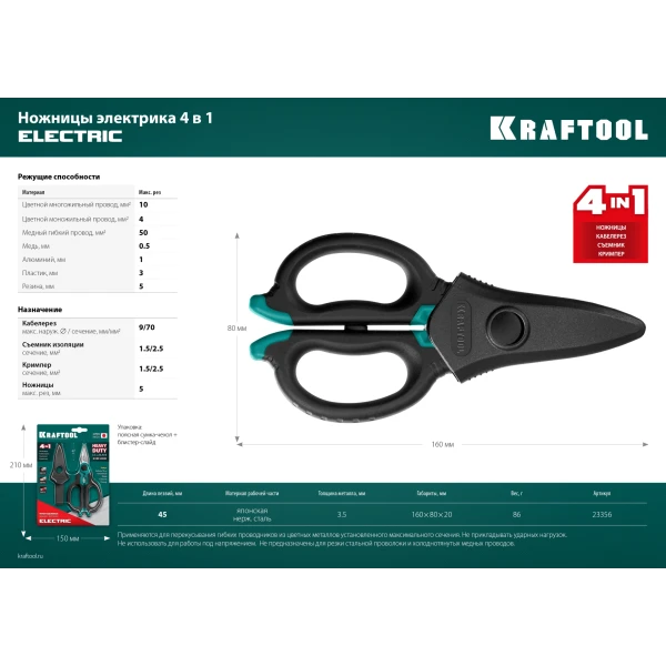 KRAFTOOL ELECTRIC, 4 в 1, 160 мм, с чехлом, ножницы электрика (23356)